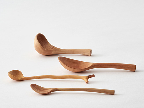 作家が粗削りした枝のスプーンから好きな形や材料を選び、紙やすりとオイルを使用し磨いて完成させます。木の自然な形を活かした世界にひとつだけのスプーンを作ることができます。