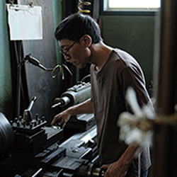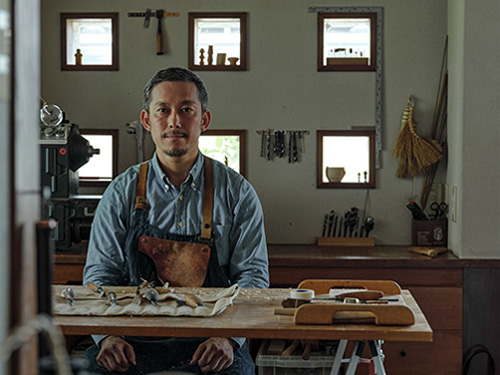 1975年名古屋市⽣まれ。⼦どものころから⽗の⼯場を継がなければと思い込み、⼯業⼤学へ進学。卒業後、⼯作機械の⼤⼿企業に就職するも向かず、⼿でものがつくりたくなり2年で退職。2000年頃から鍛冶屋巡りを始める。鉄の造形家松岡信夫に師事。その後あてもなく、林業にたずさわりつつ憧れていた⽥舎での暮らしを経て、2006年から現在の場所で⽣活道具などをつくり始める。⼩さな美術館「⼩⼩」主宰。現在、⼯芸や美術、⽇本⽂化のあらたな交流の場の開設を⽬指して瀬⼾市の古⺠家を改修中。