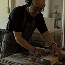 1952年福井県生まれ。81年に長野県松本市にPERSONA STUDIO を開設。創作の始まりはシナノキでつくった小さなブローチだった。やがて匙や器など日常で使うものを作品として製作、それまでの木工にはなかった生活工芸という分野を切り拓く。1985年から「クラフトフェアまつもと」の運営に参加、松本をクラフトの街にした立役者でもある。2011年市内の六九通りの古いタバコ屋を改装して「10cm」開店、2012年から「六九クラフトストリート」(2022年~六九工藝祭)に参加。同祭で作家のキュレーションによる企画展を開催している。2025年家具シリーズ「3r-h furniture」をデザイン、飛騨産業から発売。