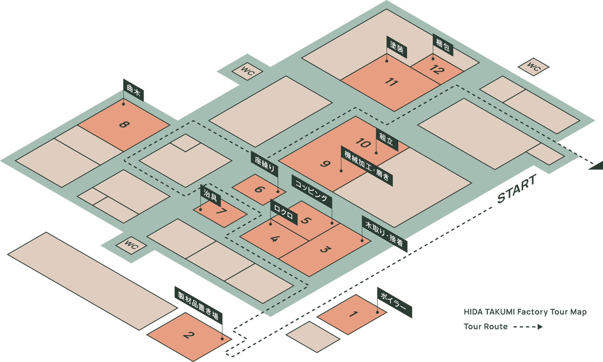 ツアーでは木材からだんだんと家具へ加工されていく流れをご覧いただけます。また飛騨産業の工場ならではの特徴もあわせてご紹介いたします。30分程度のご案内となります。