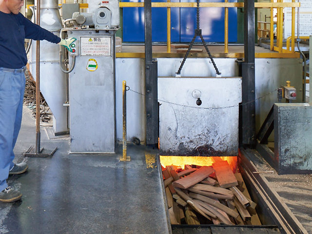 化石燃料を一切使わない環境にやさしいバイオマスボイラーを設置しています。家具の端材やおがくずを燃料とし、発生する蒸気は材料乾燥や工場の暖房に使用します。