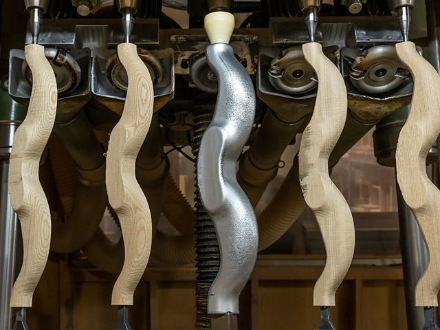 いくつもの機械を用いて椅子の部品を加工していきます。出来上がった部品は丁寧に磨いていきます。