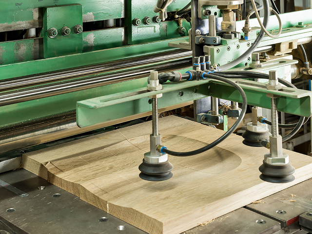 コッピング機は、金属型にならって材料を削る機械です。曲線的な椅子の肘木などの加工に使用します。