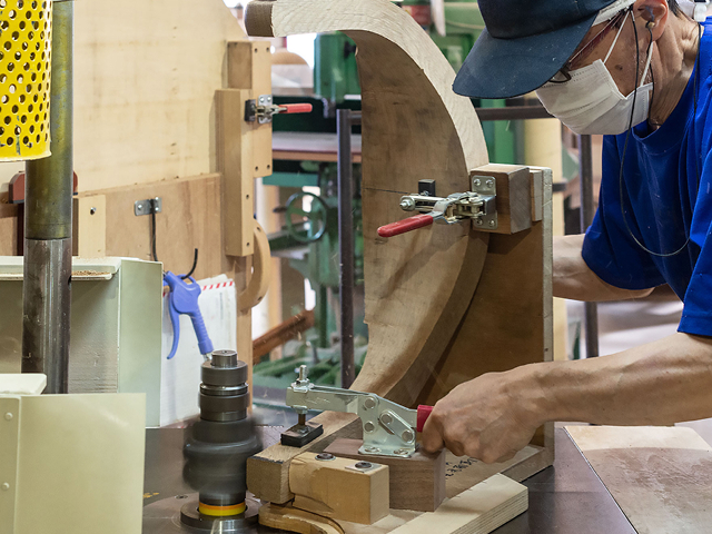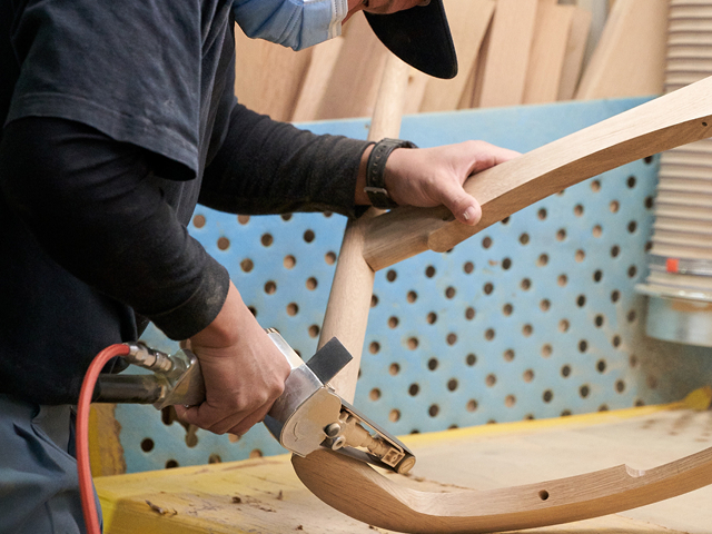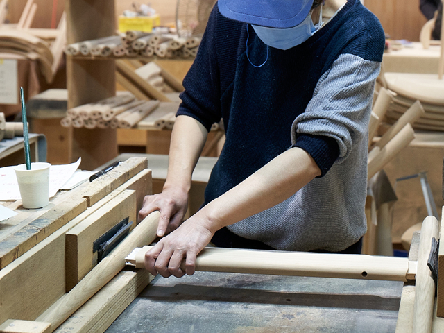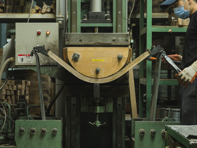 曲木は飛騨の家具の特徴です。曲木とは、木を蒸して曲げる技術です。職人が木の個性を見極めながら、曲げて行きます。