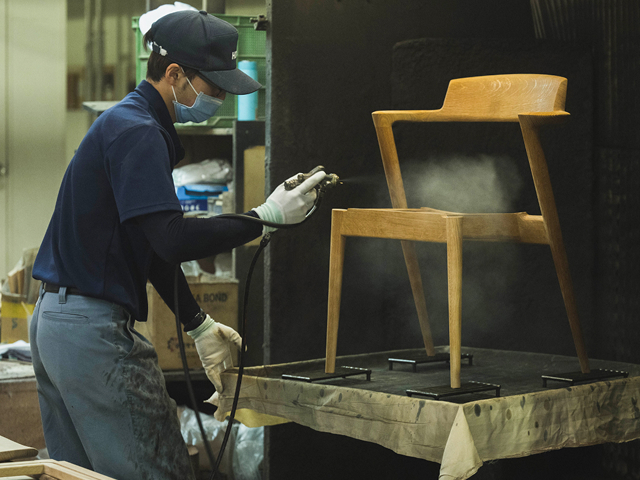おもな塗装方法はポリウレタン樹脂塗装とオイル仕上げの2種類です。塗りと磨きを繰り返しながら、丁寧に仕上げていきます。