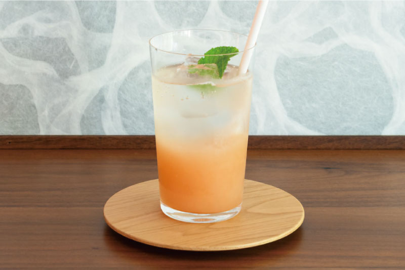店内のカフェ「椅子と珈琲」では、地元飛騨産の桃を使用した寺田農園の桃ジュースに、軽井沢の香木を用いたフォレストシロップを混ぜ合わせた「飛騨もものトニック」を販売します。期間限定のご提供となりますので、ぜひご賞味ください。