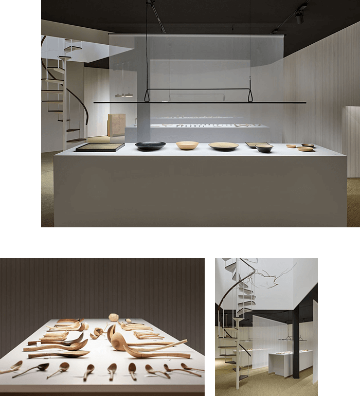 木工を中心に、人の手と卓越した技術がつくり出す工芸の仕事を紹介するギャラリーです。年数回開催される企画展を通じて、つくり手に新しい創作の機会を提供するとともに、これからの暮らしにおける木と手仕事の可能性を探ります。自然素材の豊かな表情がつくり出す展示空間にもご注目ください。