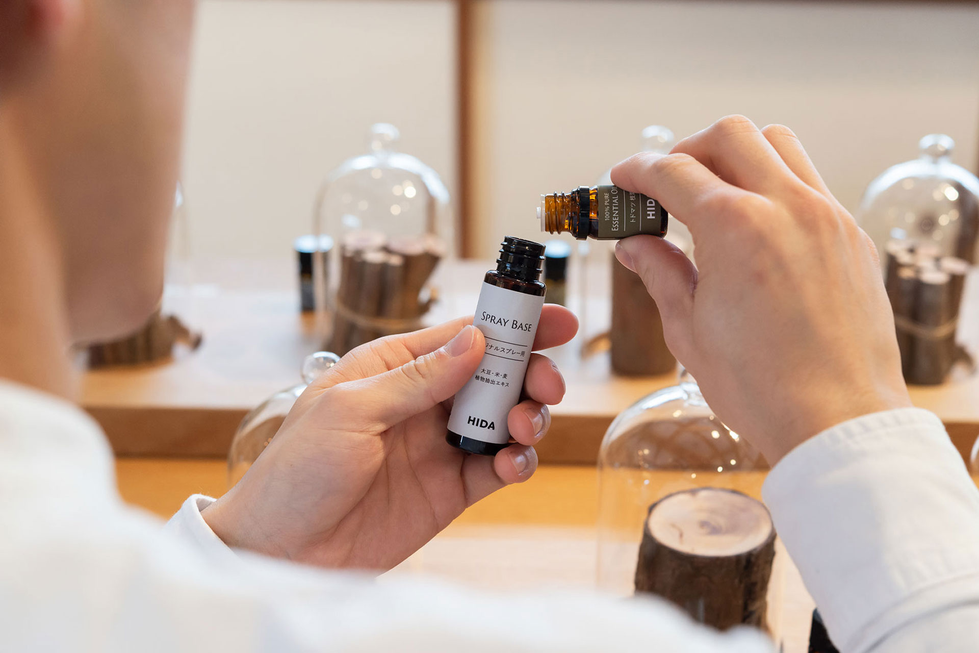 スプレーベースに自社製造の100%天然・無添加の精油の中からお好きな精油をブレンドして、オリジナルのアロマスプレーが作れます。