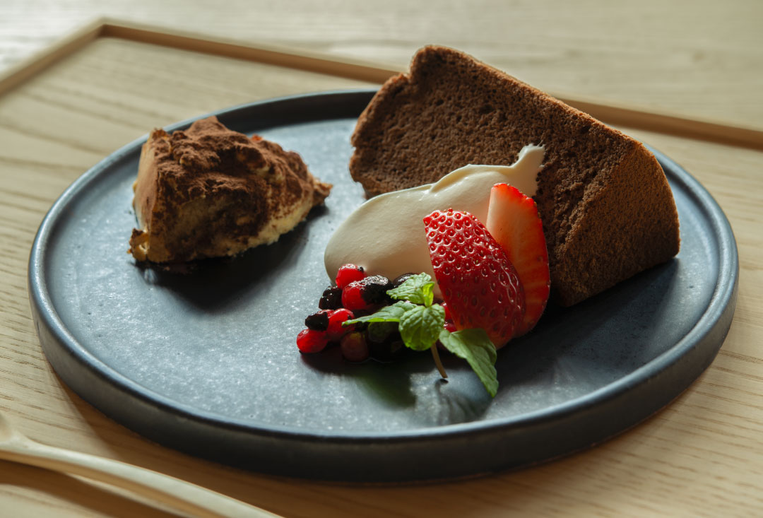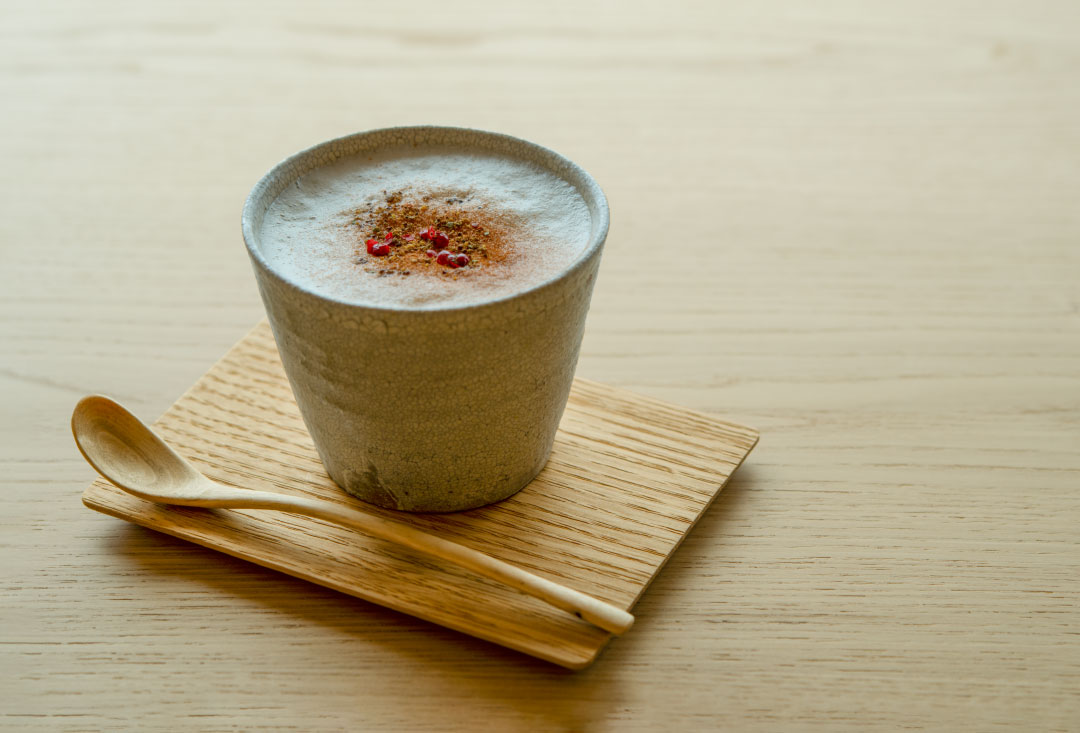 デザートプレートは「 CAFE&TABLE 工 」オリジナルのえごま入りティラミスと、米粉のシフォンにクリームやフルーツをトッピングしたクリスマス限定のスペシャルプレートです。ジンジャーティーラテは無農薬の生姜を使った自家製のジンジャーシロップとスパイスを加えた、寒い季節にぴったりのティーラテです。限定メニューで、皆さまのご来店をお待ちしております。